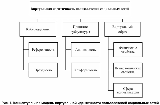 Анализ отечественных и зарубежных исследований по проблеме виртуальной идентичности послужил основой для разработки концептуальной модели виртуальной идентичности пользователей социальных сетей (рис. 1).