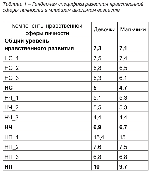 Источник: Овчарова Р.В. Гендерные различия нравственного развития младших школьников // Вестник Курганского государственного университета. 2020. № 1 (55). С. 47–51.