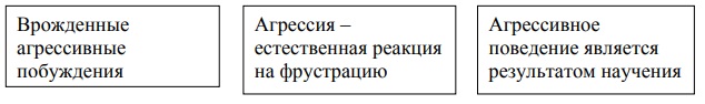 Анализируя причины враждебной и инструментальной агрессии, психологи выдвигают 3 важные теоретические концепции (схема 1).
