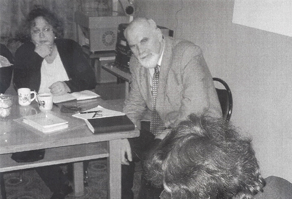 Елизавета Юльевна Будницкая (1939–2024) — за долгие годы работы психотерапевтической медсестрой, лаборантом кафедры психотерапии РМАПО, основательно участвовала в целебной для подопечных пациентов творческой психотерапевтической работе (рис. 4. К сожалению, обнаружилась лишь чёрно-белая копия этого фотоснимка (на обычном листе бумаги, несовершенное изображение, датированное летом 2000 г.). Оригинал фото нам пока найти не удалось. Как жаль, что мало сохранилось фотографий с Елизаветой Юльевной… Мы долго искали их, обращались к коллегам, участникам групп тех лет, пока без результата…). Фактически, в качестве ко-психотерапевта М.Е Бурно, как бы формулировали сегодня. В частности, Елизавета Юльевна проводила с пациентами групп Терапии творческим самовыражением М.Е. Бурно трудоёмкие занятия в Реалистическом клинико‑психотерапевтическом театре‑сообществе7, РКПТС (основатель и руководитель Театра — М.Е. Бурно). Её художественно-психотерапевтические рассказы: Альма и Джеррик [141, с. 9–11]; Весна в городе [6, с. 14–15; 110, с. 758–759]; Дом на Малой Бронной [6, с. 13–14; 110, с. 757–758]; Золотой шар [6, с. 8–10; 110, с. 753–755]; Как я артисткой не стала [6, с. 5–8]; Кошка [81, с. 11–13; 110, с. 213–214]; Мой дед [110, с. 761; 140, с. 14]; Ненужная встреча [125, с. 4–8]; «Об утопленниках, которые не захотели остаться на дне». Очерк [124, с. 3–11]; Первое свидание [110, с. 761–763; 140, с. 15–17]; Работа как работа [125, с. 8–17]; Сон [6, с. 15–17; 110, с. 759–760]; Яшка [6, с. 10–12; 110, с. 755–757]. По рассказам «Весна в городе», «Золотой шар», «Сон», очень полюбившимся участникам групп «Психологическое здоровье», нами разработаны и многие годы проводятся психотерапевтические занятия с опорой на основы метода ТТСБ и ХК.