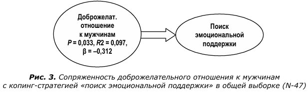 Доброжелательное отношение к мужчинам снижает обращение к стратегии «поиск эмоциональной поддержки» (рис. 3).