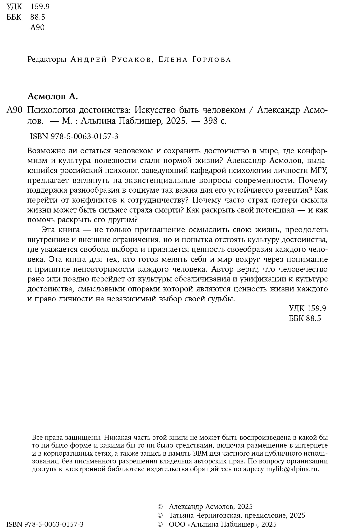 Научно-популярная книга «Психология достоинства. Искусство быть человеком», написанная выдающимся российским психологом Александром Григорьевичем Асмоловым, отражая концепцию эволюционного оптимизма, ставит перед широким кругом читателей большое количество экзистенциальных вопросов современности.