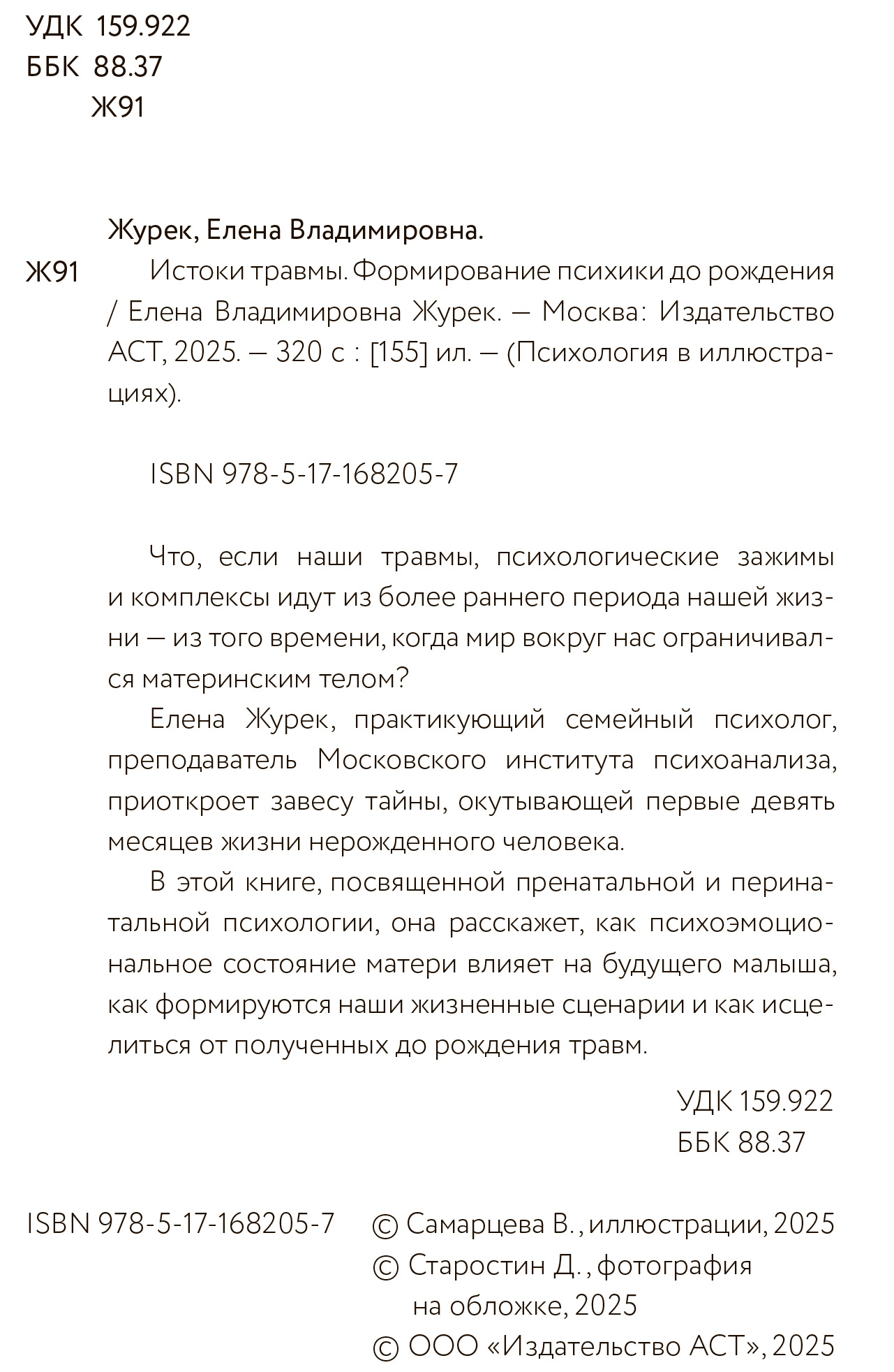 Первая книга — «Истоки травмы. Формирование психики до рождения» посвящена пренатальной и перинатальной психологии. Автор раскрывает, как психоэмоциональное состояние матери во время беременности влияет на формирование базовых психических структур ребенка и его будущих жизненных сценариев, а также как можно исцелять травмы, полученные до рождения.