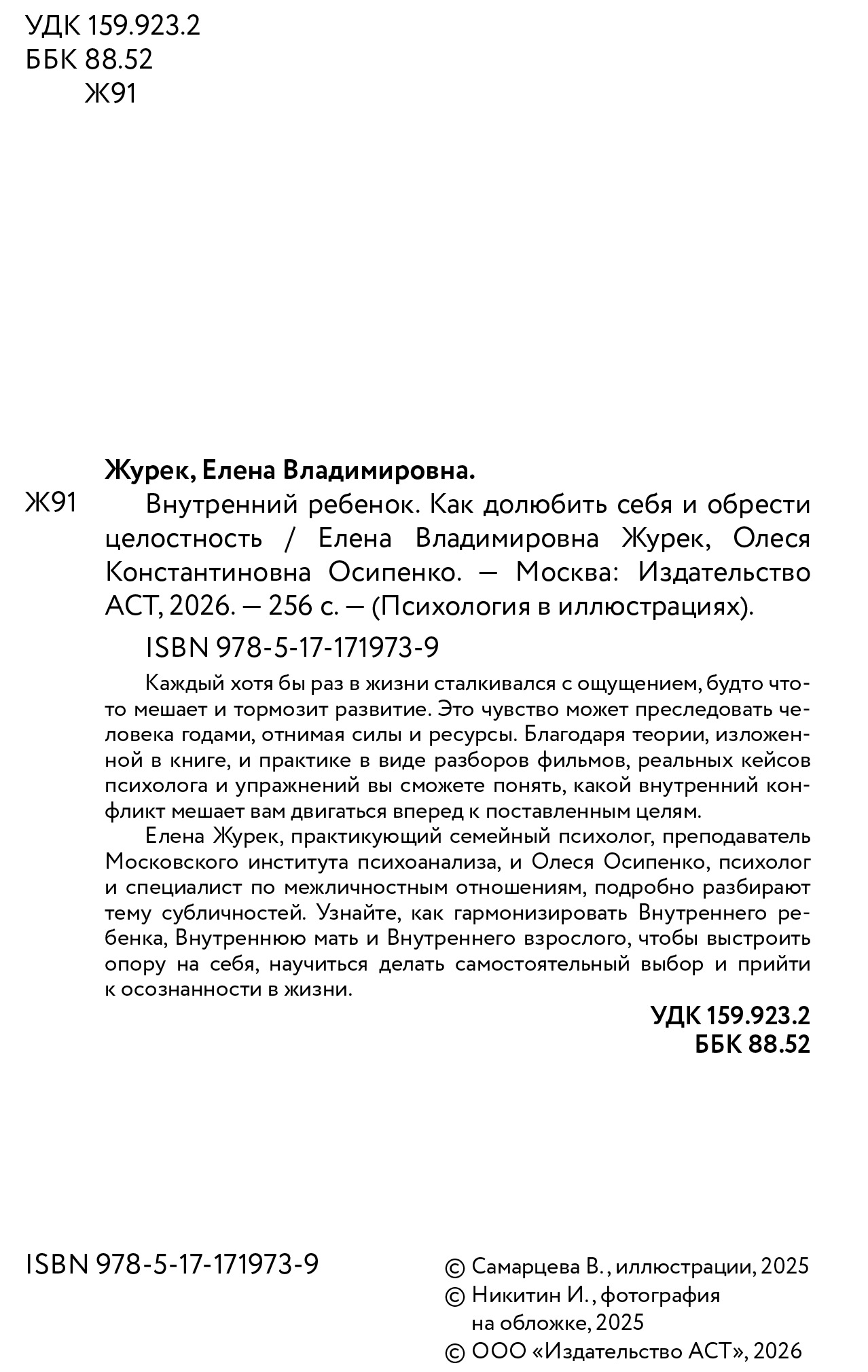 Четвертая книга — «Внутренний ребенок. Как долюбить себя и обрести целостность» объединяет все предыдущие этапы, фокусируясь на внутренних конфликтах взрослого человека, которые коренятся в неинтегрированном опыте детства. Через понятие субличностей (Внутренний ребенок, Внутренняя мать и Внутренний взрослый) авторы предлагают практические инструменты для гармонизации внутреннего мира, восстановления психологической опоры и повышения уровня осознанности.