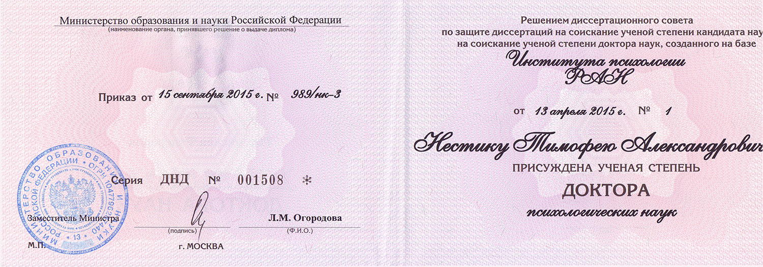 Организация: Федеральное государственное бюджетное учреждение науки Институт психологии Российской академии наук