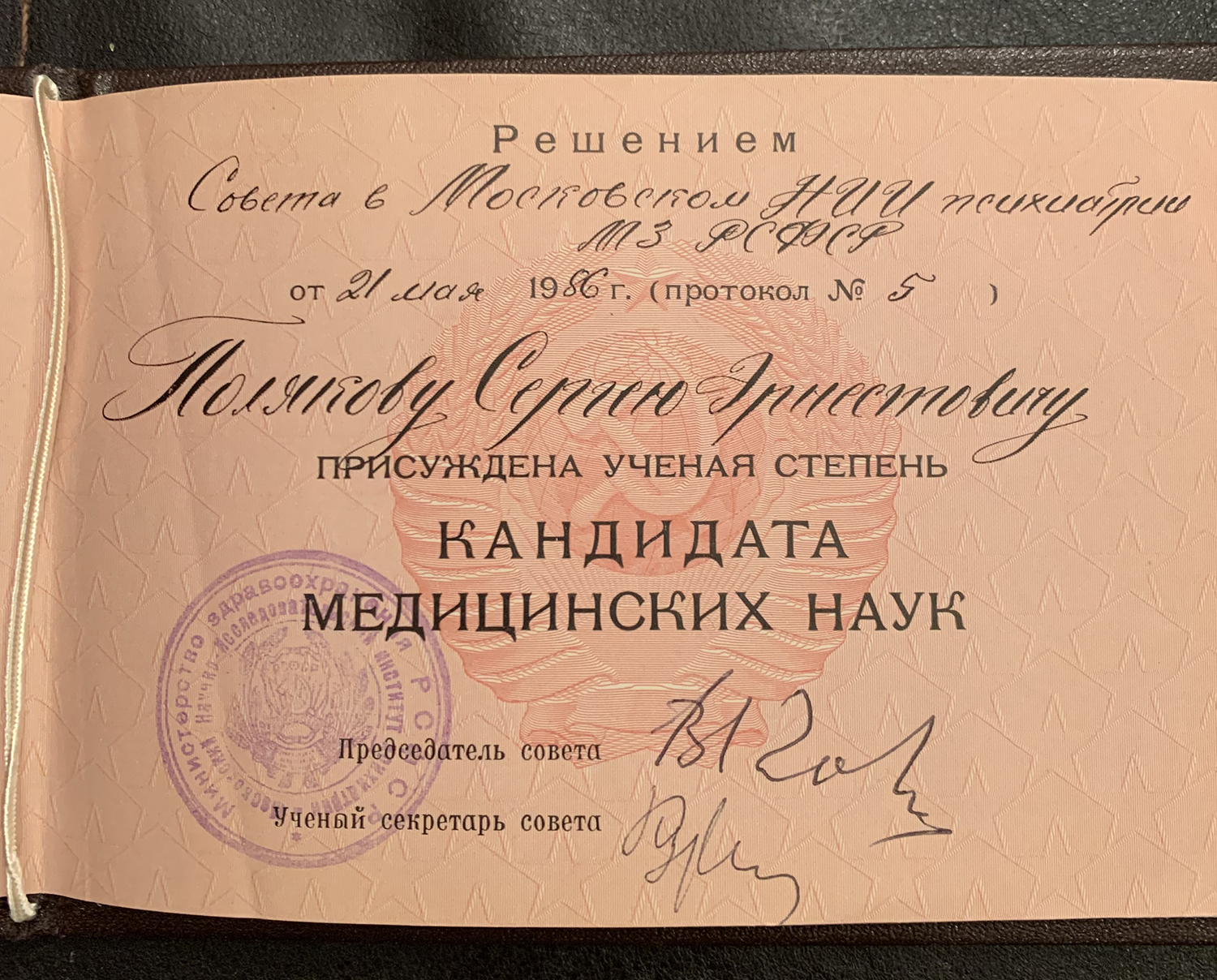 ведущий научный сотрудник, кандидат медицинских наук, на пенсии, в прошлом МНИИ психиатрии /ныне часть ФГБУ «Национальный медицинский исследовательский центр психиатрии и наркологии имени В.П.Сербского» Минздрава России (Москва)