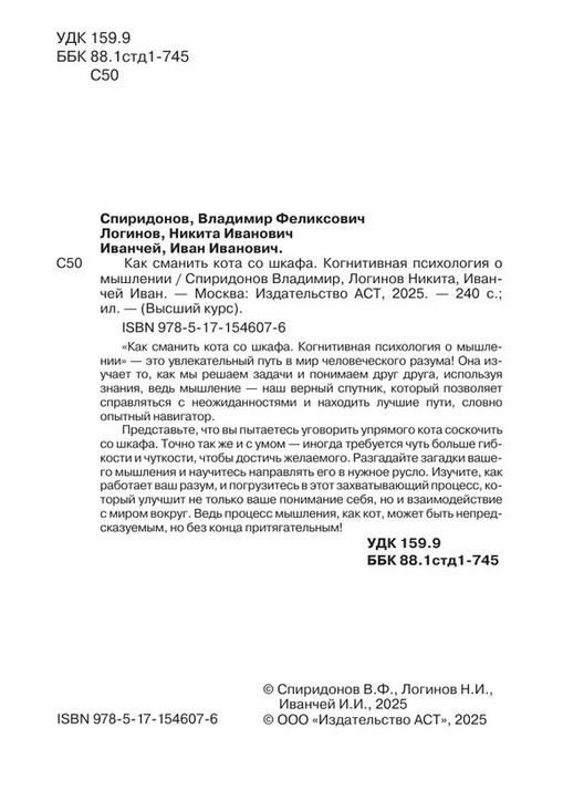 Эта книга о том, как психологи понимают и описывают человеческое мышление, т. е. нашу способность принимать решения, решать задачи, понимать намерения и действия других людей и т. д. Мышление дает нам возможность справляться с неопределенными (проблемными) ситуациями, которые подбрасывает жизнь: мы можем проигрывать в уме вероятное развитие событий до того, как начнем действовать. Таким образом удается спланировать удачные линии поведения или хотя бы избежать очевидных ошибок. Неспроста мышление (разум) вошло в название нашего биологического вида — Homo sapiens (человек разумный). Поэтому вдвойне любопытно разобраться, что же такое мышление и чем оно заслужило такую честь. Мы постараемся изложить достаточно сложные материи вполне доступным образом, помня о том, что это научно-популярная книга.