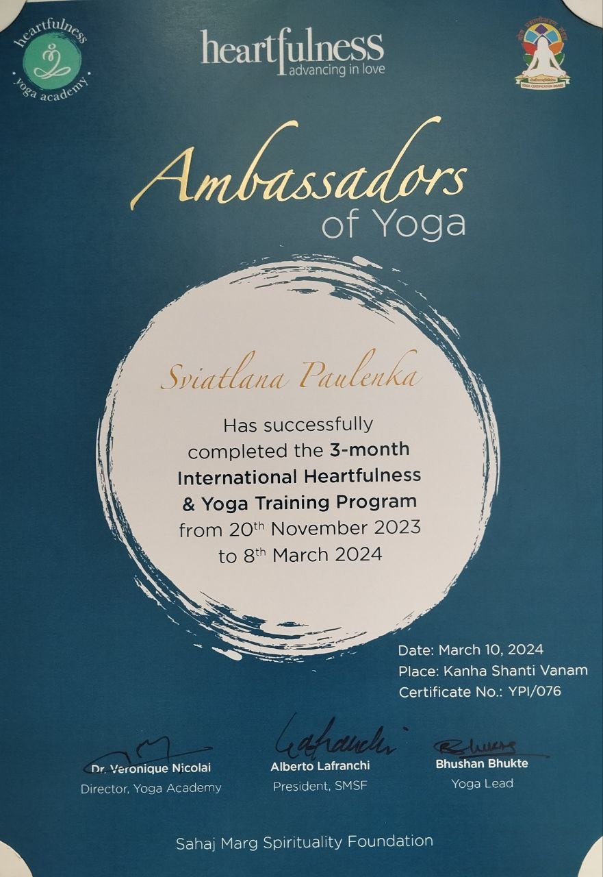 - Успешно апробировала формат массового онлайн-челленджа по медитации Heartfulness (Институт Heartfulness — это международная некоммерческая организация, насчитывающая более 13000 тренеров-волонтеров и 4 млн. практикующих по всему миру) для профессионального сообщества с параллельным лонгитюдным научным исследованием его эффектов.