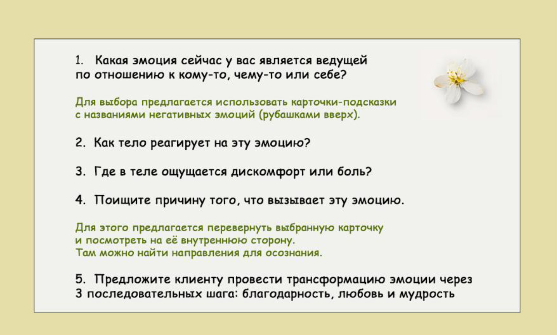 - Работа с эмоциями (проживание, принятие, трансформация в полезные).