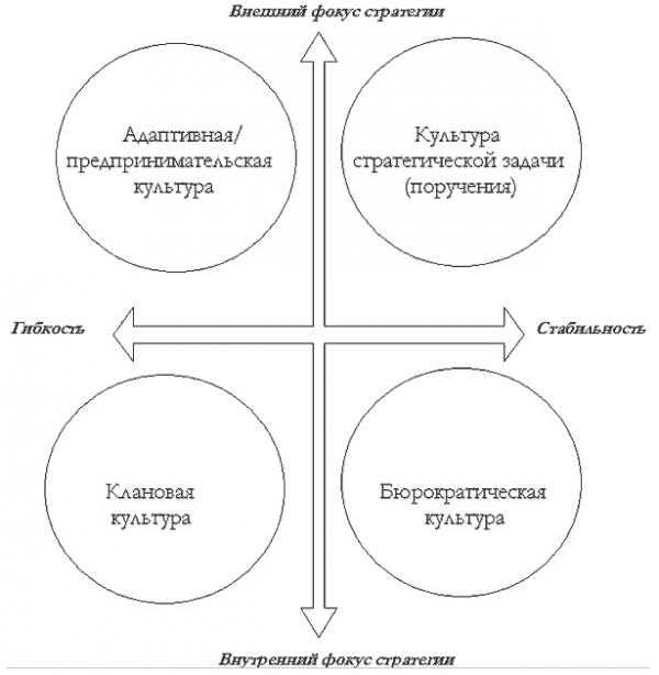 Рис. 1. Типы корпоративной культуры в зависимости от стратегии организации и требований внешней среды