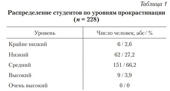 Таким образом, исследование личностных особенностей склонных к прокрастинции студентов, изучающих онлайн-дисциплины, представляется достаточно актуальным, что и стало целью нашего исследования.