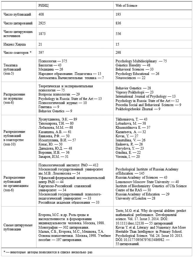Таблица 1. Характеристики публикационной активности С.Б. Малых