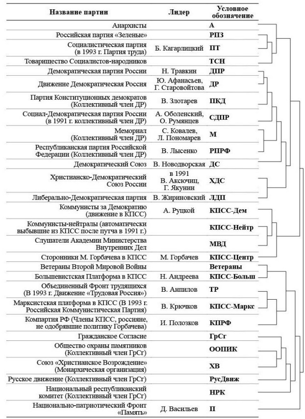 Рис. 1. Кластер-структура политических партий 1991 г.