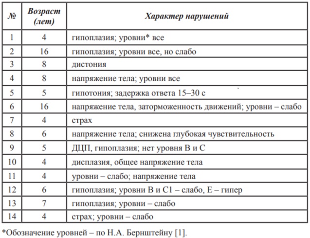Ниже описан опыт применения одного из психофизиологических показателей — суммарного кожного потенциала (СКП) — для объективной оценки успешности коррекции психосоматического состояния детей с особенностями развития. Связь между некоторыми поведенческими расстройствами у ребенка и нарушениями в построении движений на том или ином уровне [1], а также методика терапевтической коррекции этих нарушений подробно описаны в работах Е.В. Максимовой [2; 5]. Эта методика была применена и в данной работе. СКП регистрировался путем монополярного отведения кожного потенциала от предплечья левой руки ребенка (подробнее о СКП и методе его регистрации в диапазоне 0,05–300 Гц см. А.И. Назаров [4]).