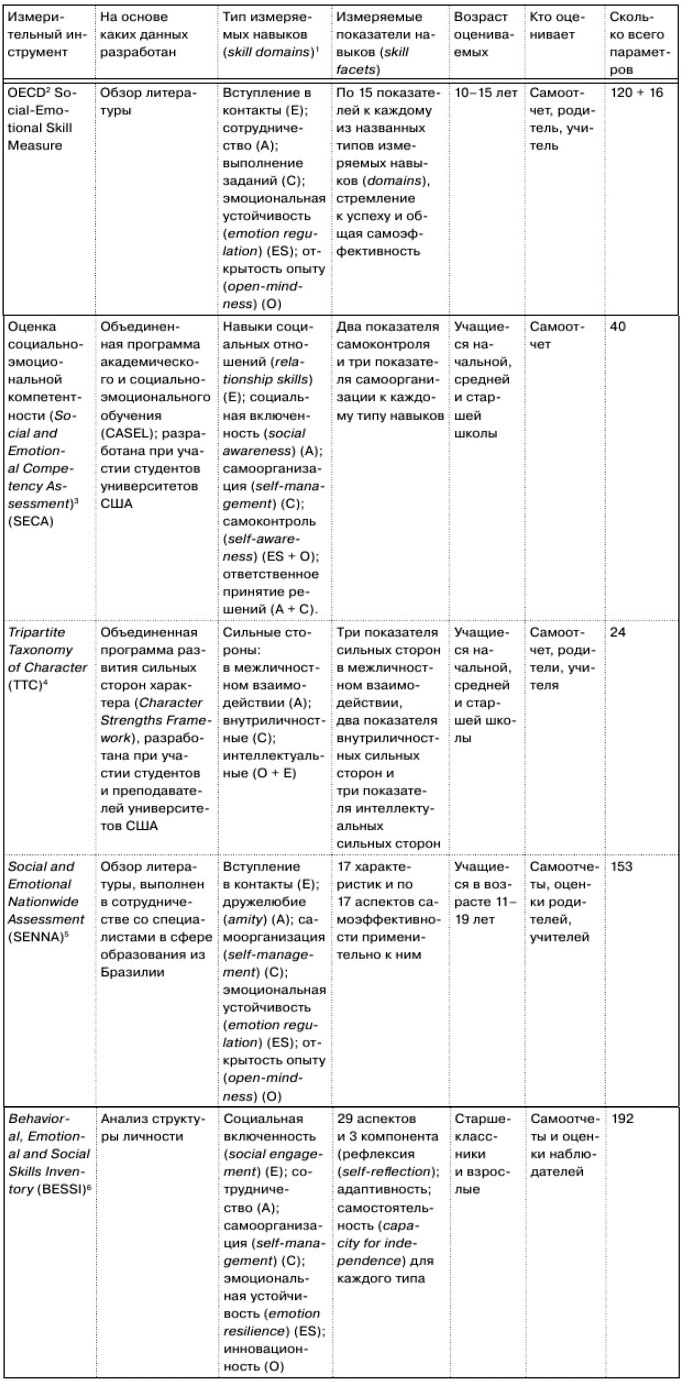 К категории «мягких навыков» относят широкий спектр способностей, необходимых для социальной адаптации, среди них выделяют типы навыков, которые можно соотнести с Большой пятеркой личностных черт. Наиболее часто применяющиеся для их оценки измерительные инструменты (опросники) представлены в табл. 1, они сопровождаются ссылками на подробные описания на сайтах разработчиков [Shiner, Soto, De Fruyt, 2021].