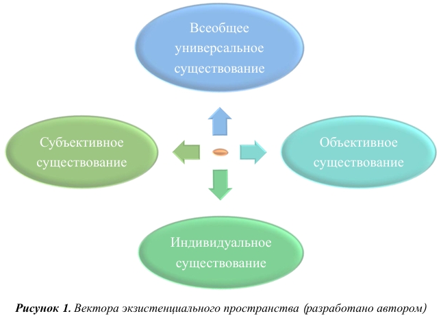 Пространство экзистенциальной реальности определяется четырьмя направлениями (рис. 1), соответственно основным параметрам существования человека: