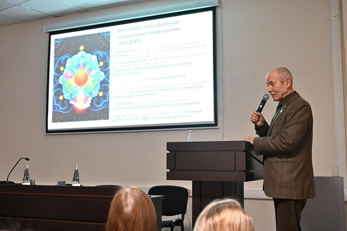 В конференции принял участие с докладом автор концепции био-психо-социо-духовной модели человека, д.м.н., профессор кафедры психотерапии и наркологии Казанской государственной медицинской академии — филиала ФГБОУ ДПО РМАНПО Минздрава России, Заслуженный врач Республики Татарстан, академик Международной академии психологических наук Анатолий Михайлович Карпов.