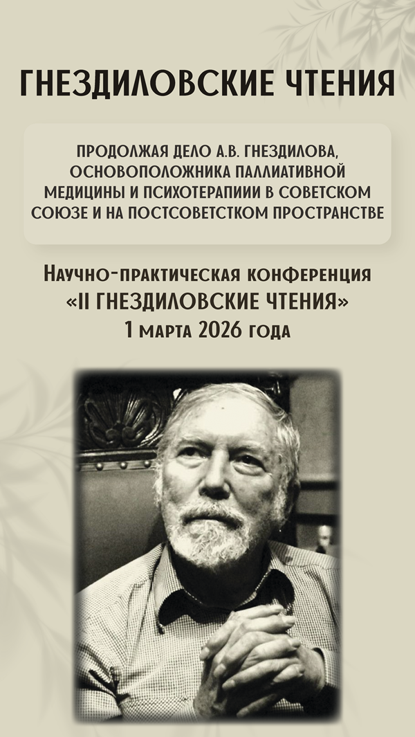 Опыт и научные труды основоположника отечественной паллиативной медицины и психотерапии А.В. Гнездилова важны для понимания темы смерти, веры, ценности времени жизни человека, ее качества, помощи пациенту и специалистам, влияния личности врача и исцеляющей терапевтической среды.