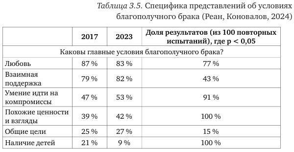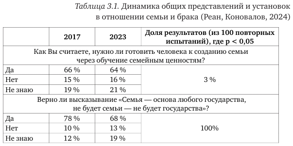 Таблица 3.1. Динамика общих представлений и установок в отношении семьи и брака (Реан, Коновалов, 2024)