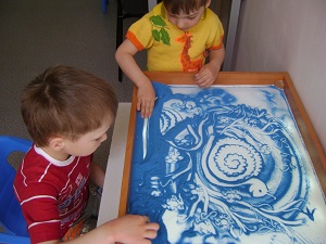 Если в этом увлекательном процессе принимают участие несколько человек, картина, в целом, только выигрывает, так как у каждого "художника" свое видение происходящего. Занятие песочной анимацией - одно из самых продуктивных коррекционных упражнений для детей с синдромом дефицита внимания.