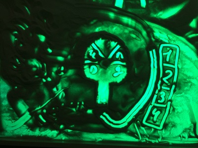 Первая встреча началась с обсуждения конфликта в спортивной секции. Ребенок перешел в другую спортивную школу (тоже из-за конфликта со сверстниками), надеясь на изменение ситуации. Но столкнулся с оскорблениями и физической агрессией. Неуверенный в себе, обида «захлестывает». Были использованы техники «Sand-Art»-терапии, создан рисунок на световом планшете: