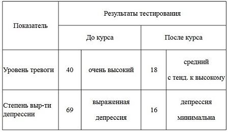 2. Применение приёмов и техник танцевально-двигательной терапии положительно влияет на изменение клинических показателей: наблюдается значимое снижение тревожности по методике Тейлора и степени выраженности депрессии по методике В.А. Жмурова: