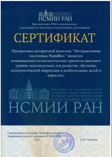 Самой интересной частью семинара была демонстрация интерактивной песочницы с дополненной реальностью «ISandBox». Мастер-класс, посвященный применению данной технологии в обучении и психотерапии, провела кандидат педагогических наук, сопредседатель Евразийской федерации песочной терапии и тренинга Т.М. Грабенко. Проект «Интерактивная песочница «iSandBOX» как инновационный инструмент для психологической работы» (программно-методический комплекс) вышел в финал НК «Золотая Психея» по итогам 2018 года.