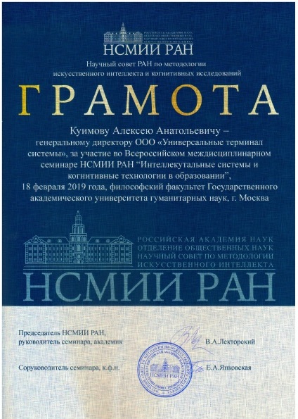 18 февраля на философском факультете ГАУГН проводился всероссийский междисциплинарный семинар «Интеллектуальные системы и когнитивные технологии в образовании». Семинар проводится в рамках деятельности Научного совета РАН по методологии искусственного интеллекта и когнитивных исследований (НСМИИ РАН). Руководители семинара – академик, д.ф.н., профессор В.А. Лекторский, к.ф.н., доцент философского факультета ГАУГН Е.А. Янковская и к.п.н., заместитель декана философского факультета ГАУГН Н.Н. Емельянова.