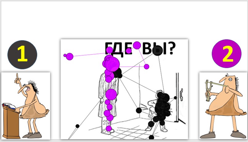«Здесь показана запись айтрекером глазодвигальных реакций, которые были получены в ходе следующих экспериментов.