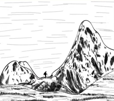 Этот рисунок (13) изображает идею, метафору К.Г. Юнга: чтобы подняться на новую вершину знания, надо сперва спуститься в долину. Его позиция, с которой согласуется наша и наши данные, состоит в том, что «регрессия есть основное условие творческого акта».