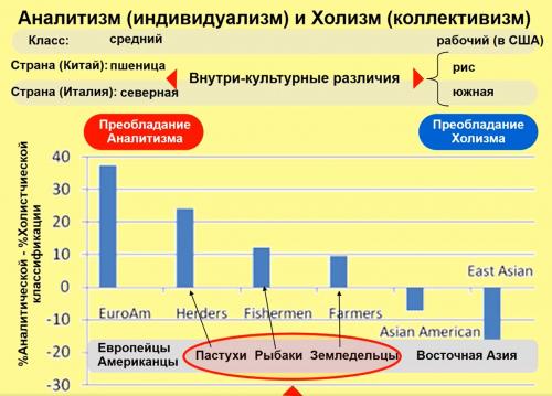 Индивидуализм и холизм – это не просто ментальные характеристики, они связаны с особенностями экономического, административного устройства общества и свойственны соответствующим, уже сопоставленным выше группам стран.