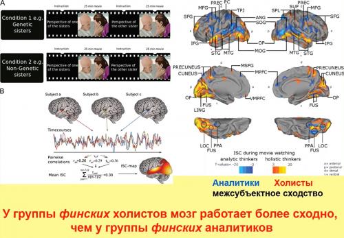 Наши исследования, проведенные совместно с финскими коллегами на финских субъектах (рис. 23), показывают, что у «холистов» и «аналитиков», ринадлежащих к одной культуре, мозг работает по-разному при совершении ими внешне одного и того же поведения.