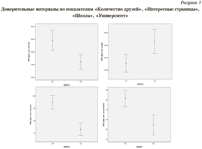 В целях определения характера различий по информативным признакам между группами был проведен сравнительный анализ и построены доверительные интервалы (рисунки 1, 2 и 3).