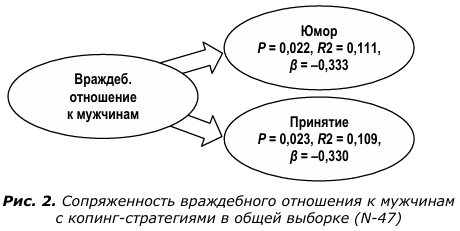 Враждебные установки по отношению к мужчинам снижают частоту обращения к стратегиям «юмор» и «принятие» (рис. 2).