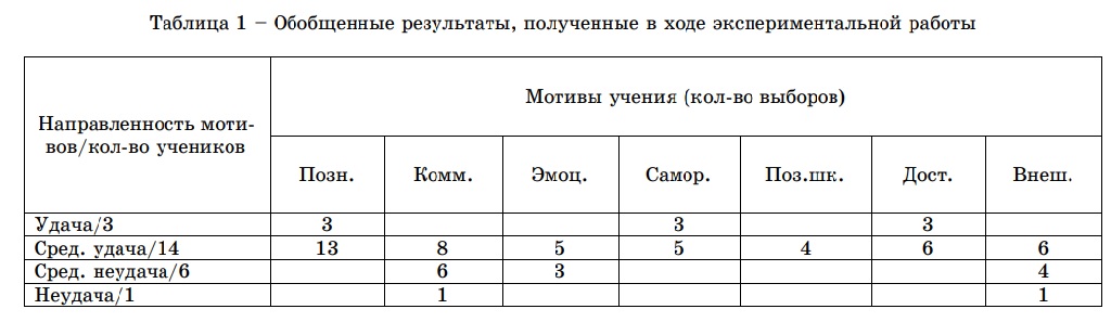 Анализируя мотивы учения у подростков, советские психологи доказали, что те представляют собой сложную структуру, в которой воедино слиты широкие социальные мотивы (сознание общественной важности приобретения знаний, необходимость учения для подготовки к самостоятельной жизни и труду), собственно познавательные мотивы и личные мотивы (стремление пользоваться авторитетом и играть руководящую роль в детском коллективе), связанные со стремлением к успеху, с самолюбием [5, с. 128].