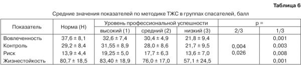 Еще одной детерминантой профессиональной успешности спасателей считаем жизнестойкость. Показатели жизнестойкости снижаются от группы спасателей с высоким уровнем профессиональной успешности к группе с низким ее уровнем (табл. 6).