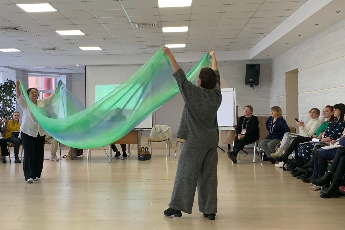 Примерами инструментов танцевальной терапии поделились на своих мастер-классах Виктория Владимировна Волкова, психолог, танцевальный терапевт (Ижевск), рассказавшая о феномене танго как о диалоге, построенном на объятии, и об объятии как форме выражения чувств, а также Дарья Юрьевна Борисова, медицинский психолог, танцевальный терапевт Городской психиатрической больницы №1 им. П.П. Кащенко, преподаватель Института практической психологии «Иматон», познакомившая участников с возможностями индийского танца в терапии.