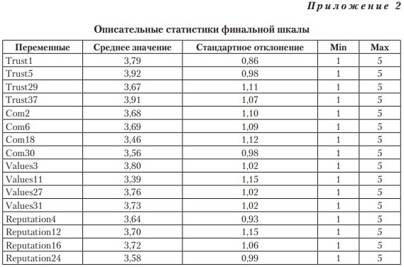 Таким образом, были подтверждены конструктная валидность и надежность шкалы «репутация» в методике КСКО.