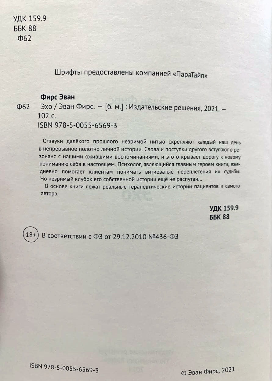 Название книги подразумевает постоянно звучащие в настоящем отзвуки прошлого, с одной стороны, и длительно неугасающие отголоски психотерапии, с другой.