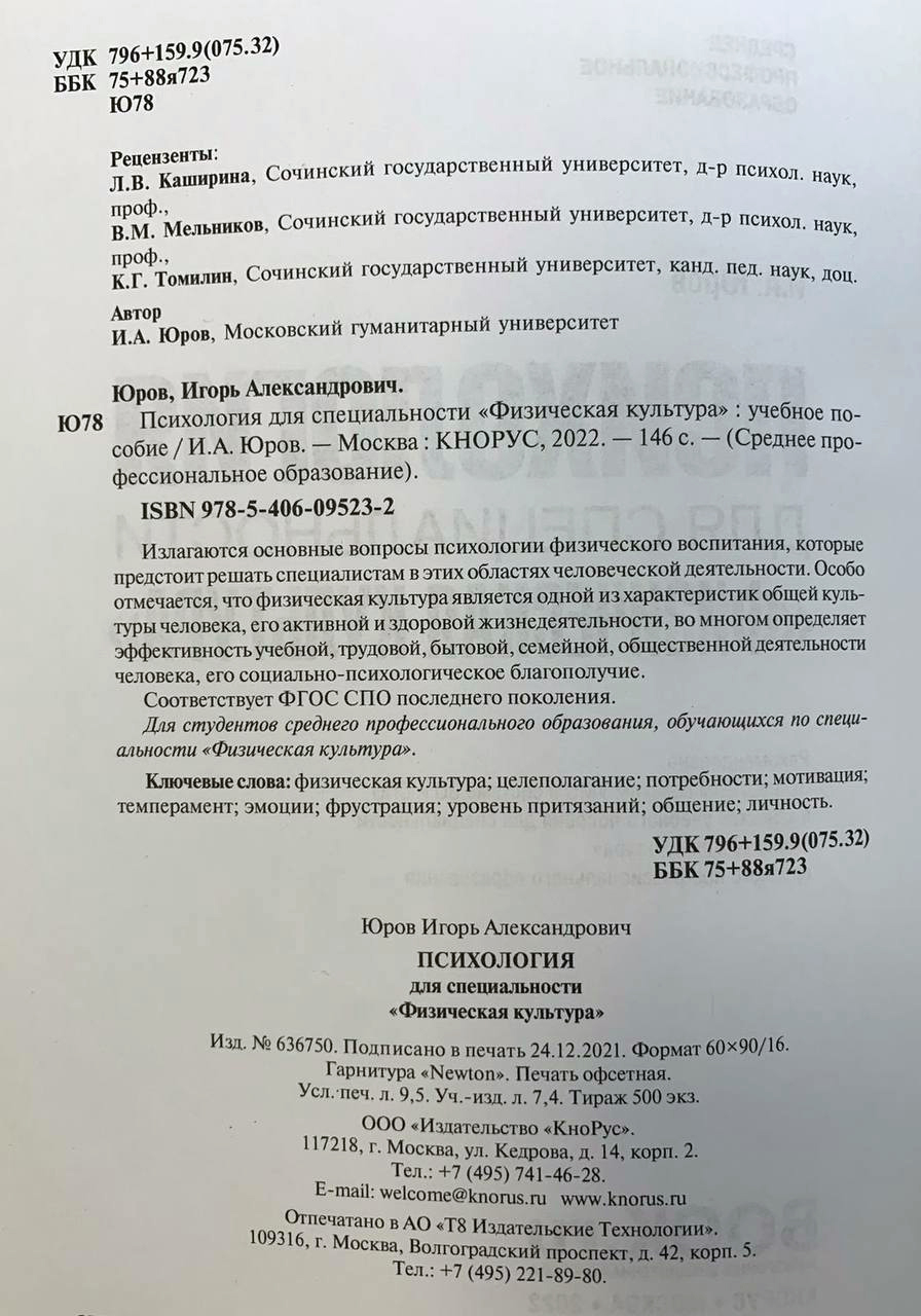 Изучение дисциплины «Психология физической культуры» предусматривает: 1) содействие развитию у студентов профессионального сознания, мышления и этики; 2) вооружение будущих специалистов по физической культуре и спорту психологическими знаниями в процессе физического воспитания и спортивной деятельности; 3) проявление инновационного и творческого подхода к будущей деятельности; 4) формирование у студентов необходимых умений и навыков при использовании психологического знания в области обучения и воспитания. В данном учебном пособии особенно отмечается, что физическая культура является одной из характеристик общей культуры человека, его активной и здоровой жизнедеятельности, во многом определяет эффективность учебной, трудовой, бытовой, семейной, общественной деятельности человека, его социально-психологическое благополучие.