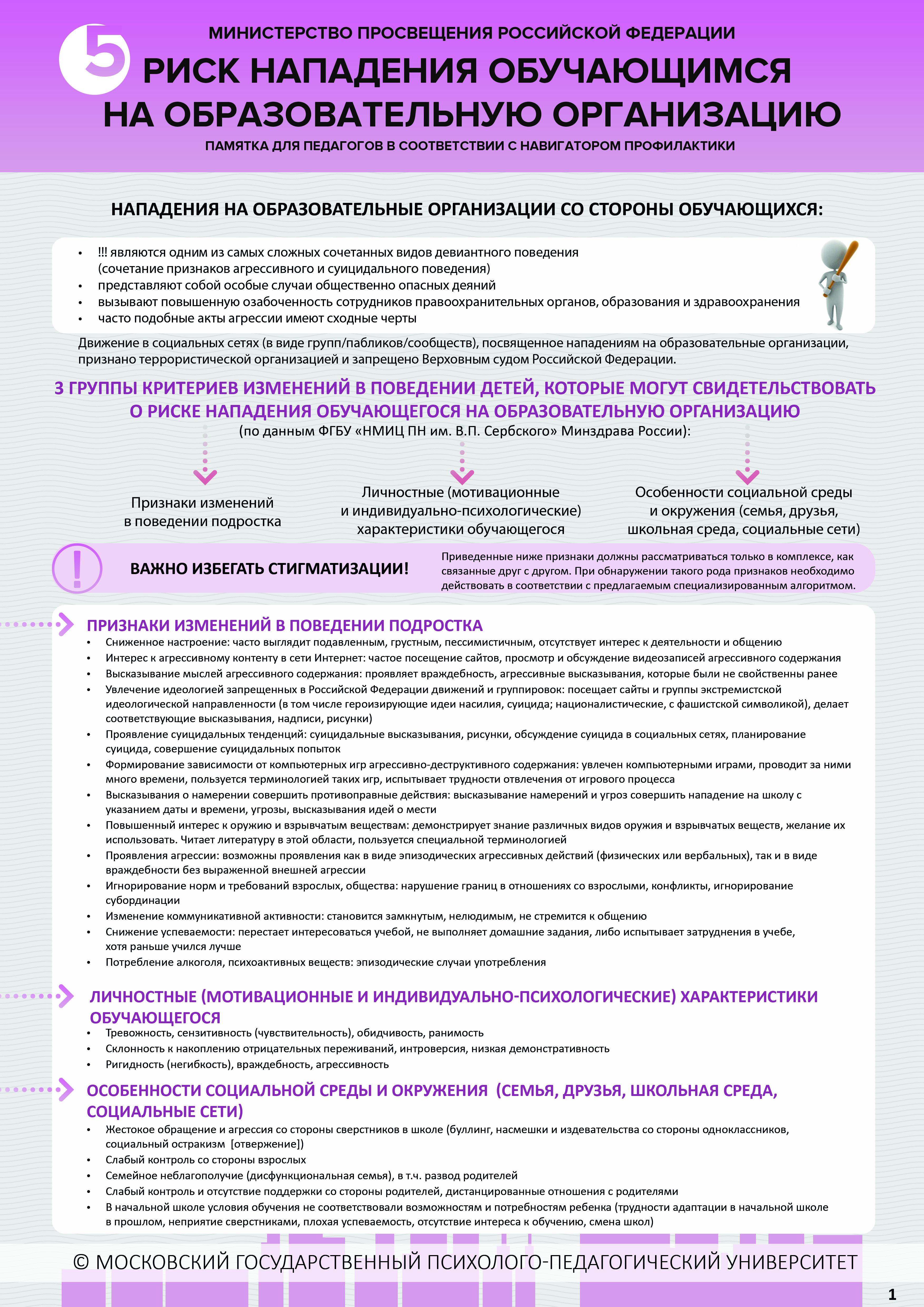 - Памятка "Риск нападения обучающимся на образовательную организацию".