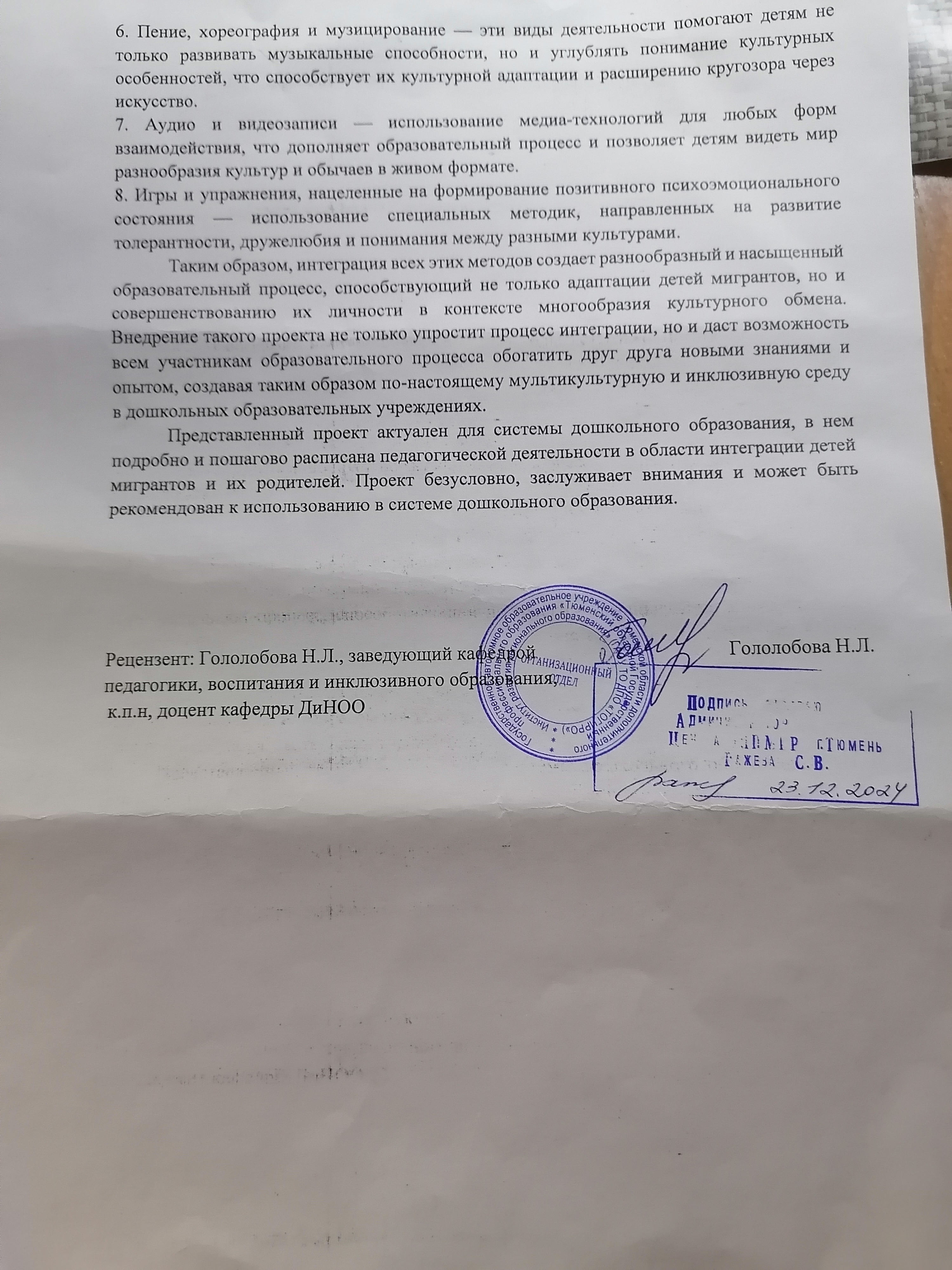 Ключевые аспекты нашего подхода – сохранение и укрепление психического, физического и эмоционального здоровья детей наряду с поддержкой их нравственного развития и социальной адаптации, особенно тех из них, кто испытывает трудности в овладении русским языком. Следует отметить, что успешная интеграция этих детей в среду, где преобладают русскоговорящие сверстники, требует системного подхода к коррекции языковых недостатков. Важным элементом данного процесса является обучение основным социальным ролям, соответствующим их возрастным особенностям, а также усвоение норм общественного поведения. Такой подход позволяет создать благоприятные условия для успешной адаптации детей мигрантов и их семей, помогая им легче включаться в образовательное и социальное пространство России. Проект также ставит перед собой задачи по формированию совместных инициатив для родителей, способствующих их социальной адаптации и укреплению взаимодействия с образовательными учреждениями. В рамках проекта планируется разработка различных программ и мероприятий, направленных на развитие культурного обмена, что станет основой для построения культурного диалога между мигрантами и местным населением. Таким образом, проект «Интеграция детей мигрантов и их родителей» не только направлен на решение текущих задач интеграции, но и служит платформой для формирования взаимного уважения и доверия в мультикультурной среде, что является важным шагом к созданию гармоничного и стабильно развивающегося общества.