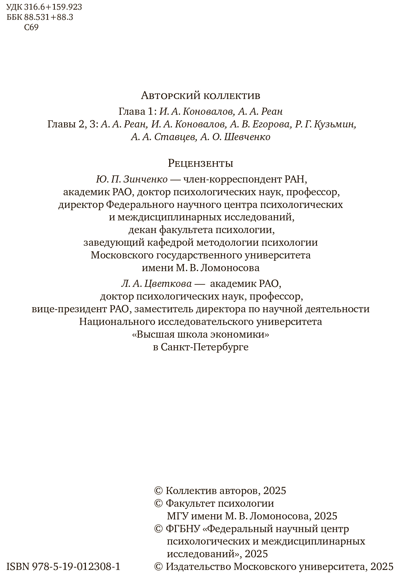 Организация: Федеральное государственное бюджетное научное учреждение «Федеральный научный центр психологических и междисциплинарных исследований»