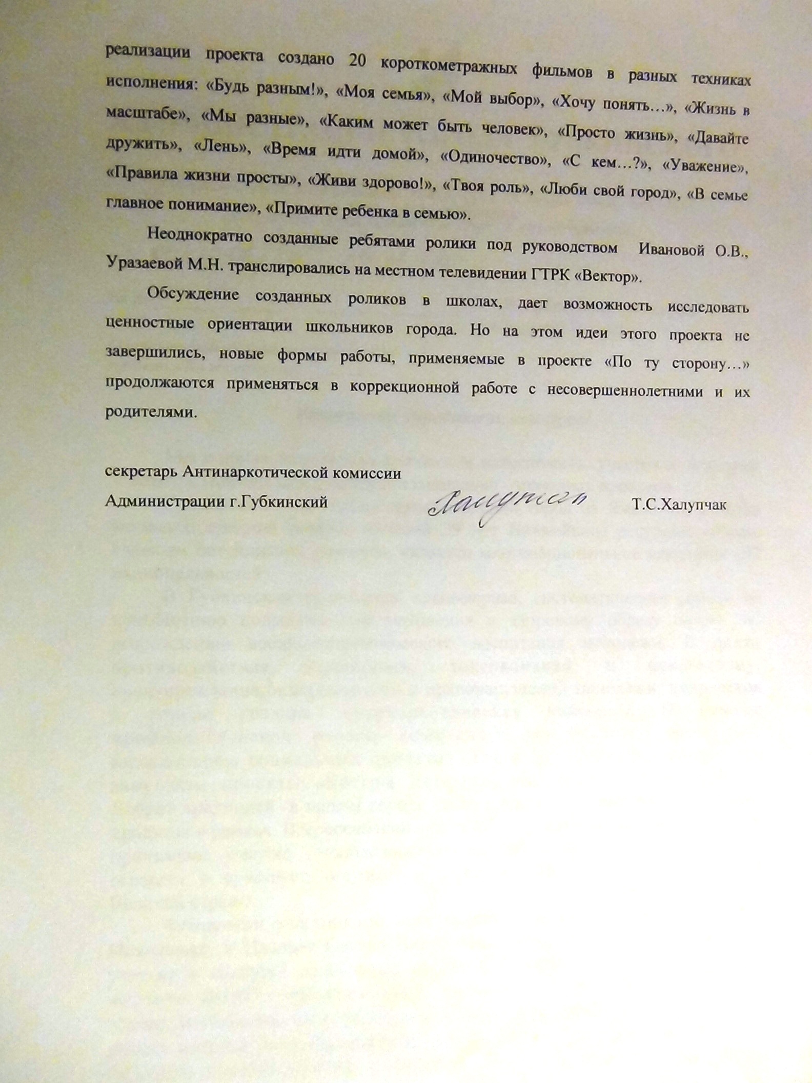 - С целью трансляции роликов в подростковой среде посредством интернета была создана группа в контакте, ссылка на сайт: http://vk.com/po_tu_storonu_podrostki_gubkin